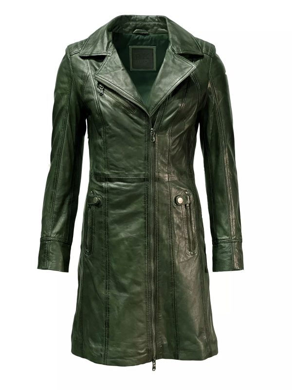 De lange leren jas is gemaakt van 100% hoogwaardig lamsleer, waardoor de groene leren jas lekker zacht aanvoelt. Het leer wordt geleurd in een bad en er worden verder geen coatings aangebracht wat voor een prachtige uitstraling zorgt. Door natuurlijke wijzen van het leer ademt het leer goed en duurt het snel voordat de lichaamswarmte het lichaam heeft opgenomen. Verder voelt de leren jas door de duurzame leer lekker warm aan in de winter en koelt het en ventileert het uitstekend in de zomer.